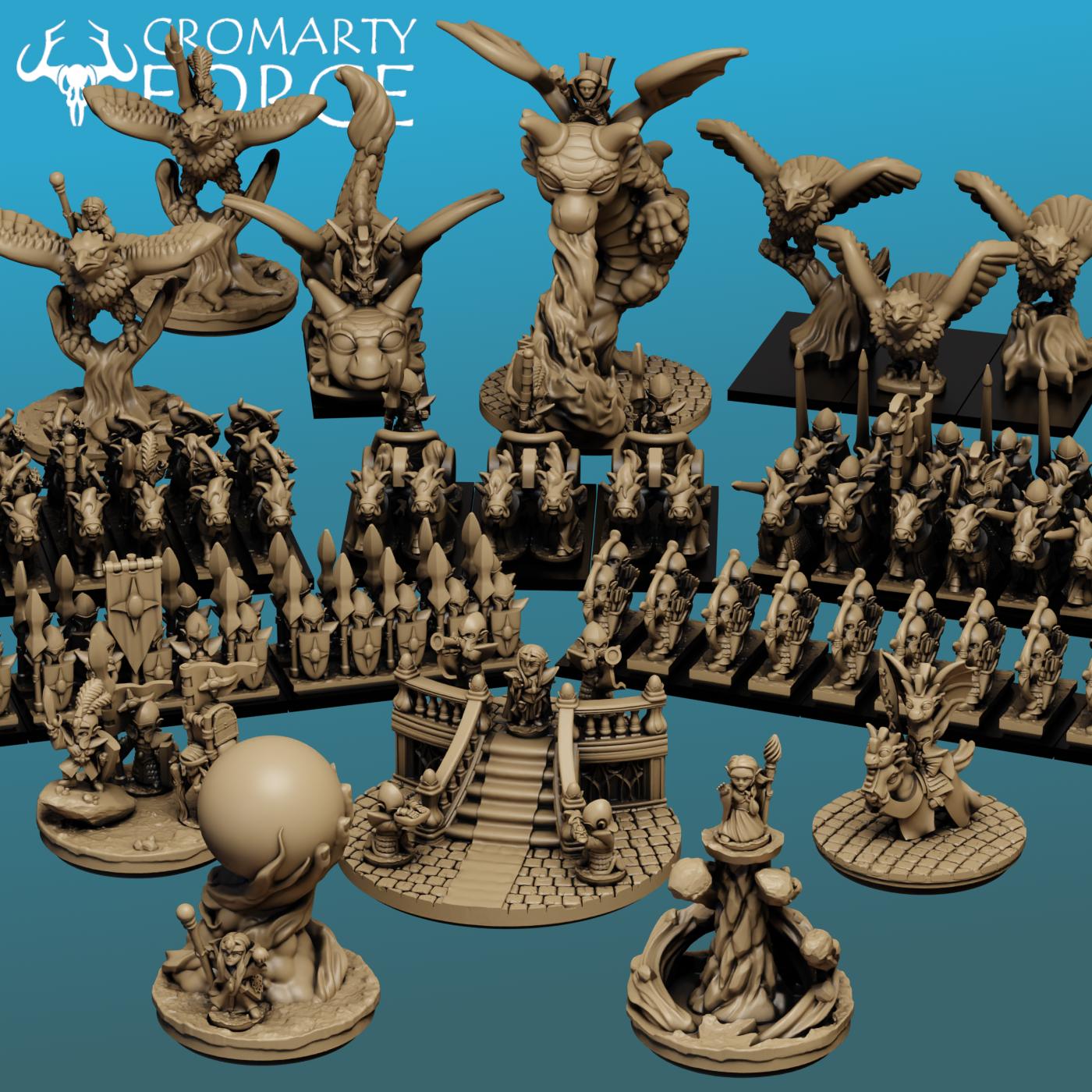 My daughter asked me to sculpt her an army to take to the North of the wall tournament, she wanted something easy to print, easy to paint, hard wearing and cute. This is what I produced for her, and with her permission what I am now selling for home printing. The army contains all the elements you would need to field as high elves for Warmaster. All files are self supporting (If your printer is like mine – you should not need to add any supports to the files). All infantry and cavalry unit files are presented as strip based and separated. Infantry and cavalry models come with 4 different unit mark variations. This army was a work of love for my Daughter, but I hope it brings a smile to you and some fun to your table top. There are more images of the whole army here.