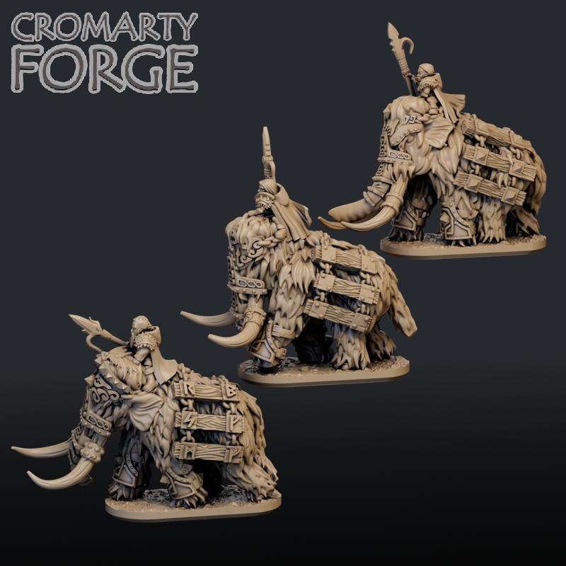 10mm Norse Mammoths set contains files to print 3 different war mammoths. Each mammoth is provided in two scales, one to fit on a 40mm x 60mm base and the other to fit on 20mm x 40mm bases. The two scales and three sculpts provide for additional flexibility for deploying as alternative armies.