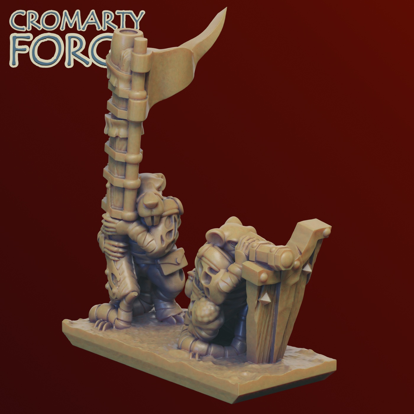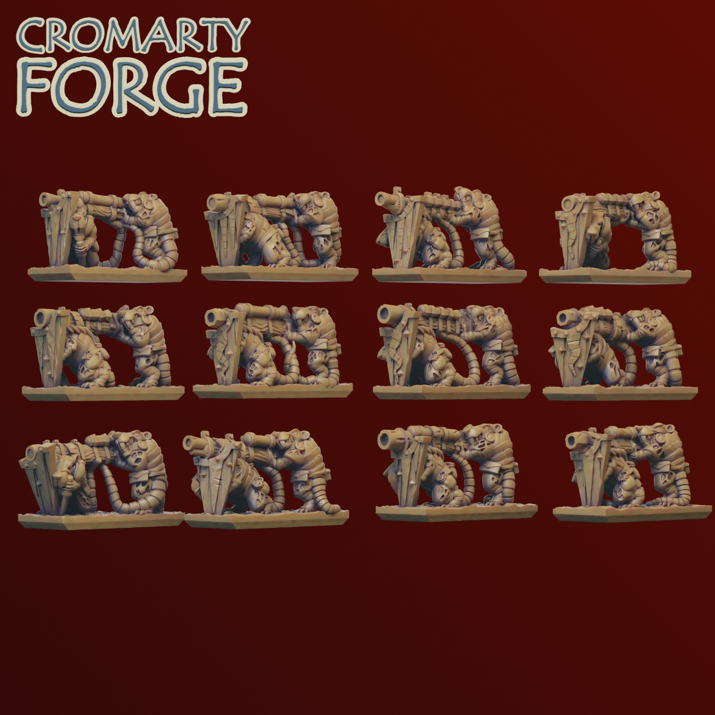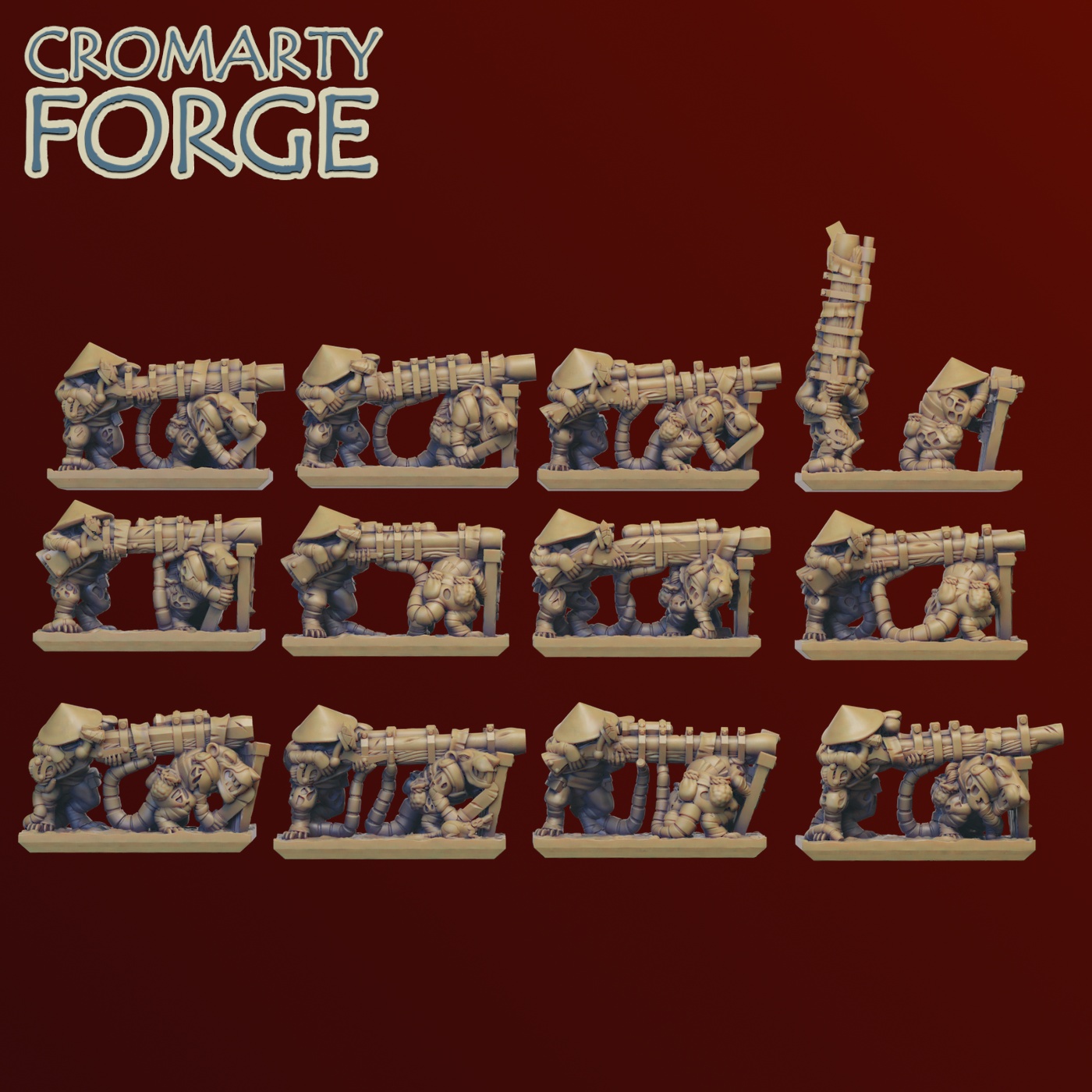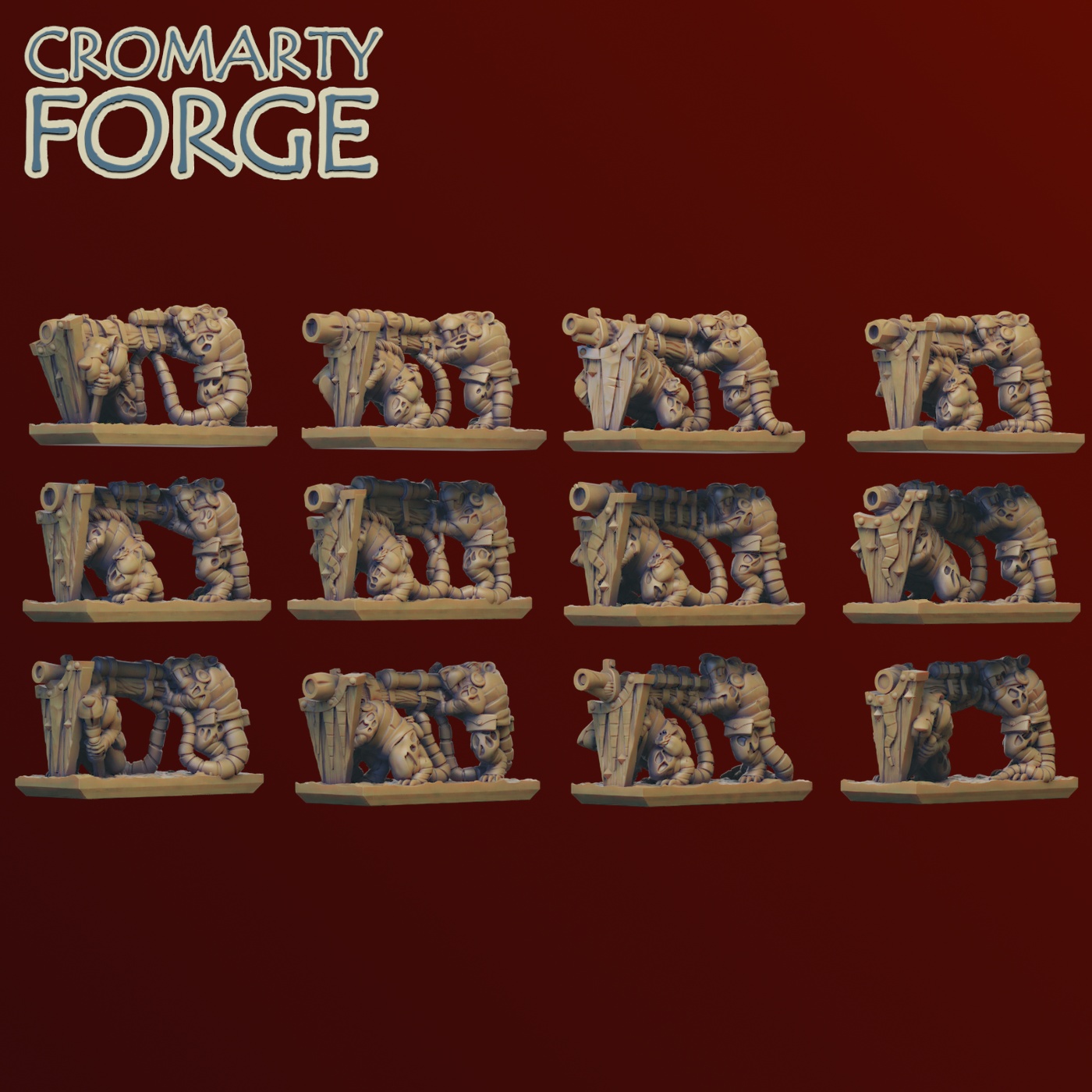 The Ratmen Boomers set contains 13 pairs of ratmen boomers and 13 pairs of Ashigaru boomers, including a spotter and flag bearer. The files contained are intended to be printed on resin (SLA / DLP) printers. This set is intended to be entirely self supporting to minimise clean up after printing. However every machine has its own unique requirements so please ensure you are happy with the files before you print.