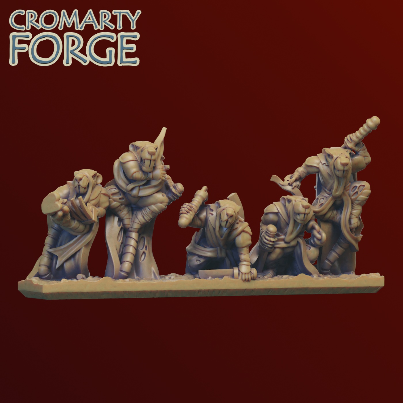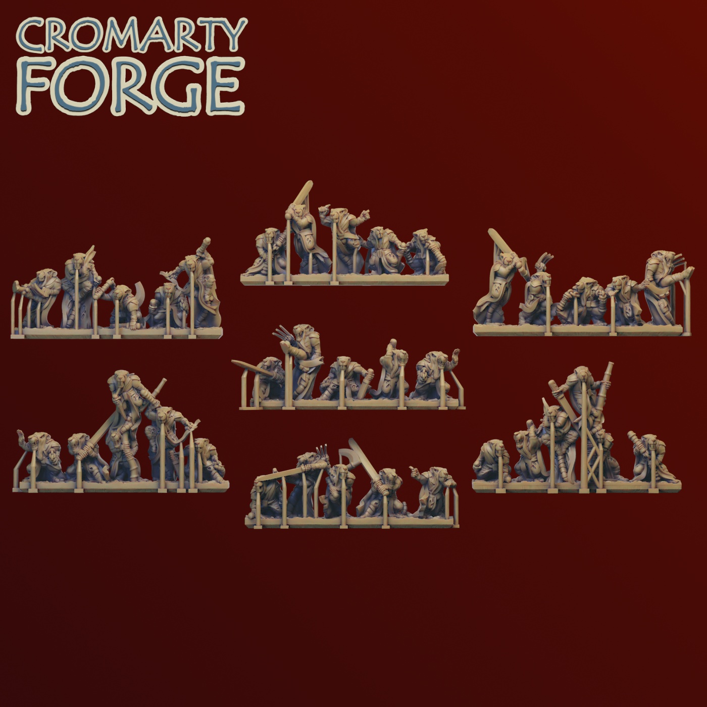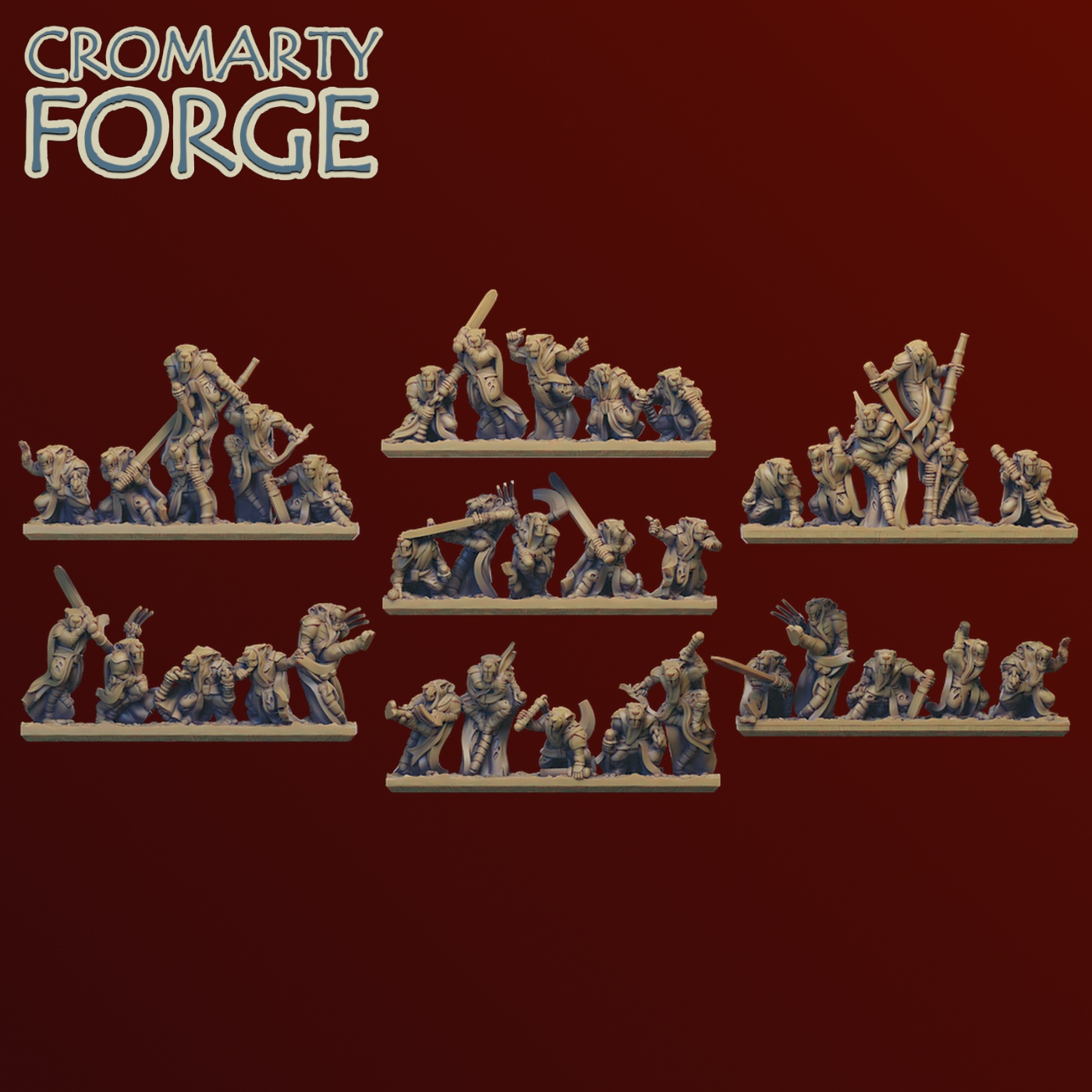 The Ratmen Sneaks set contains 7 strips of 6 Ratmen sneaks, and over 20 individually based Sneaks, including two lookout strips. The files contained are intended to be printed on resin (SLA / DLP) printers. The models are pre-supported so that they can be printed flat on the print head, however every machine has its own unique requirements so please ensure you are happy with the files and support structures before you print. Unsupported versions of the files areย included in the set.