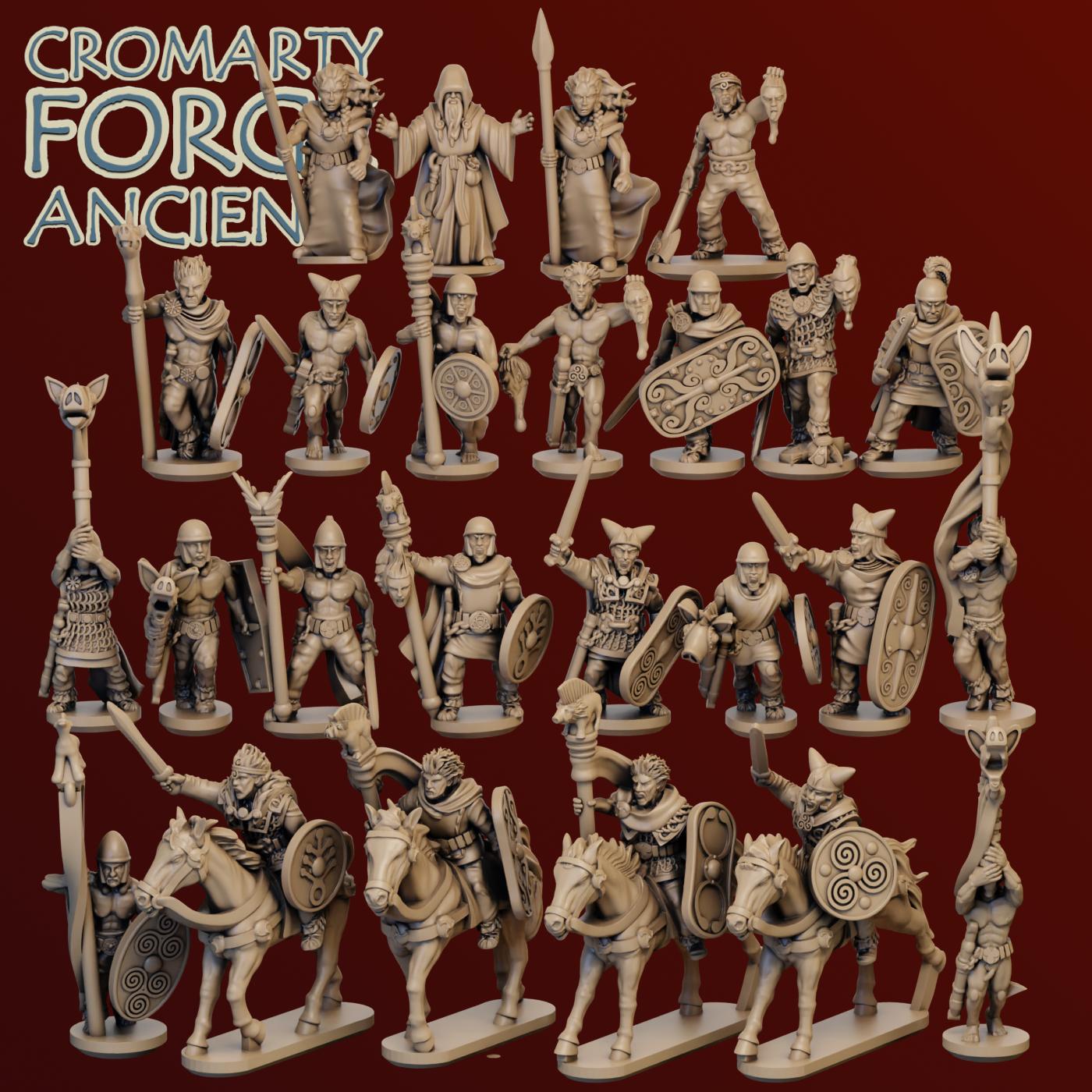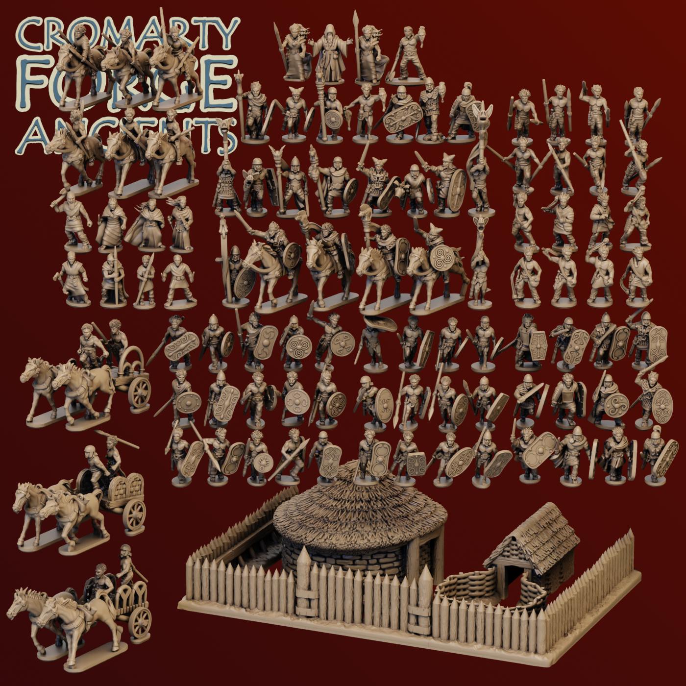 The Briton 15mm full army consists of all of the 15mm Briton units, plus the roundhouse camp and village defenders. So this pack contains all of the files from: