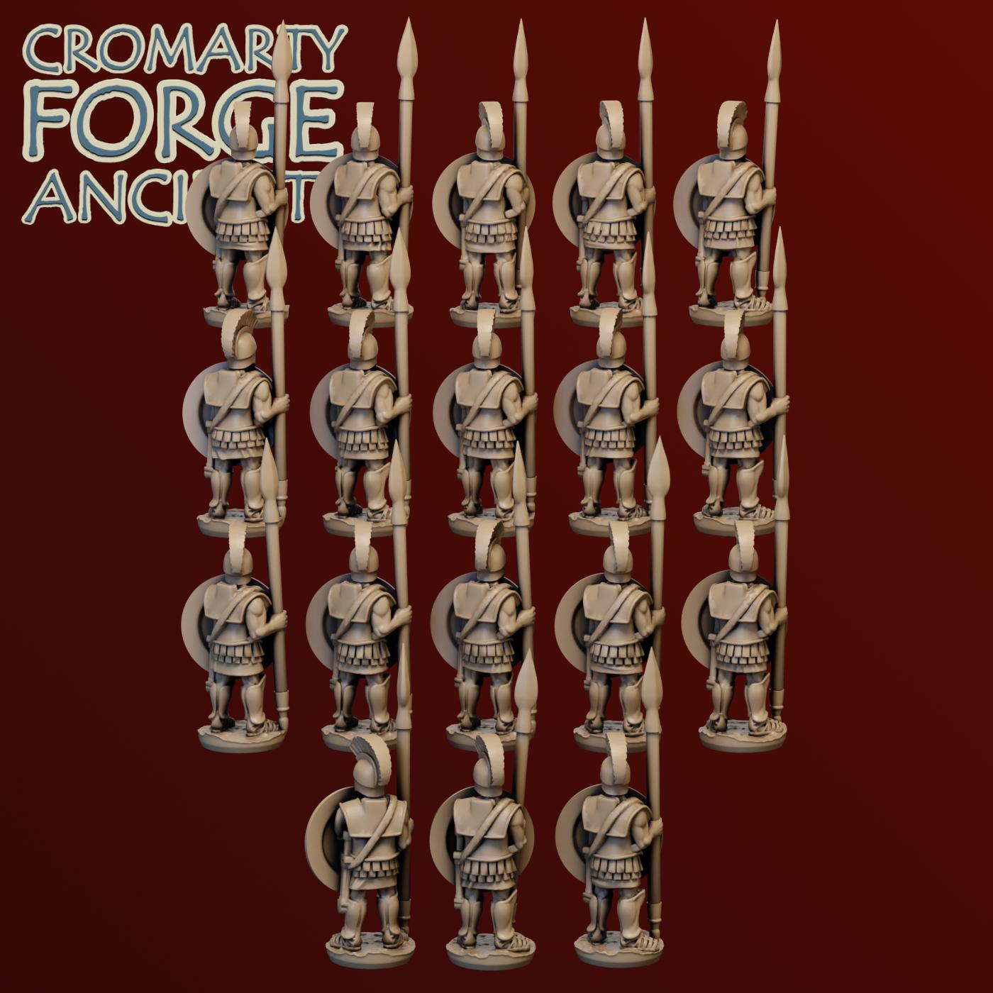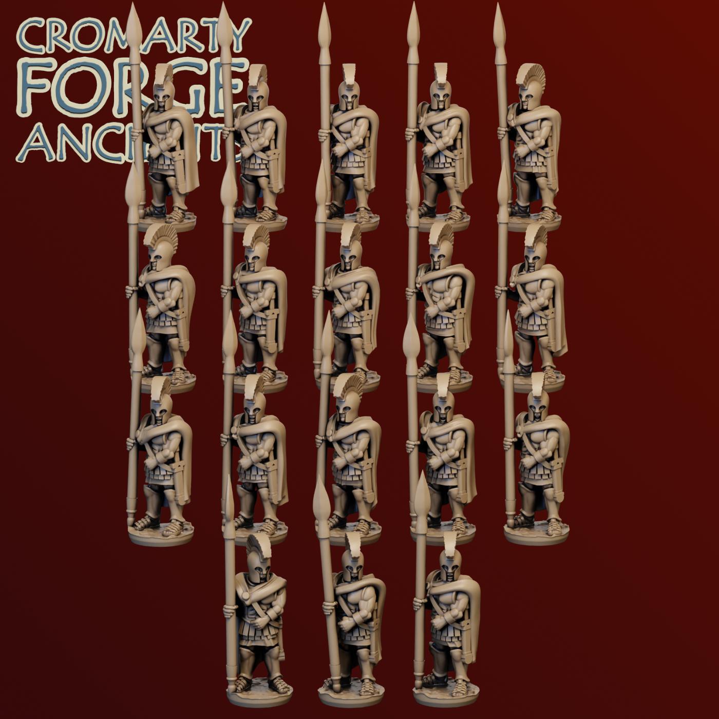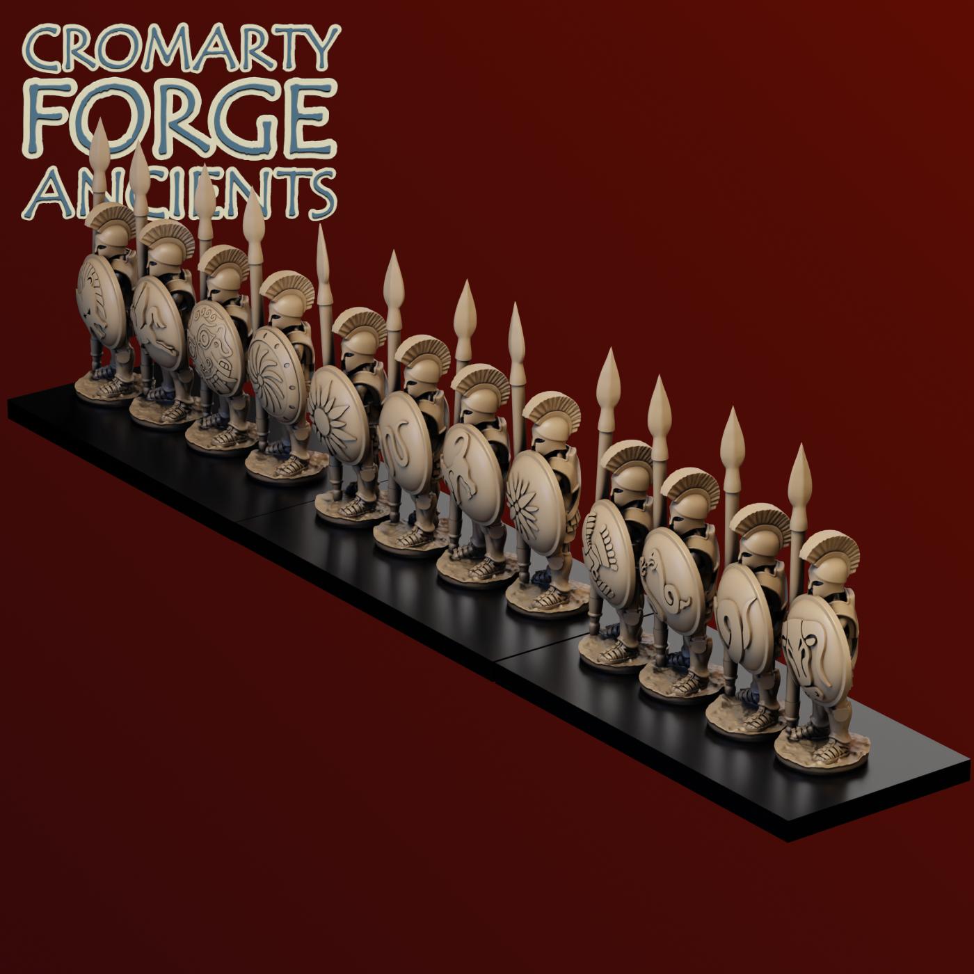 15mm Earlier Greek – Hoplites set contains files to print a huge variety of hoplites (with body armour). Each sculpt is presented with 2 or more helmet options (including the iconic Corinthian and Illyrian) and both with and without cloaks. The 15mm sculpts are presented with separate Hoplon shields.