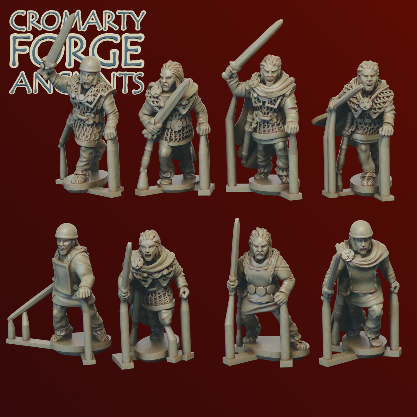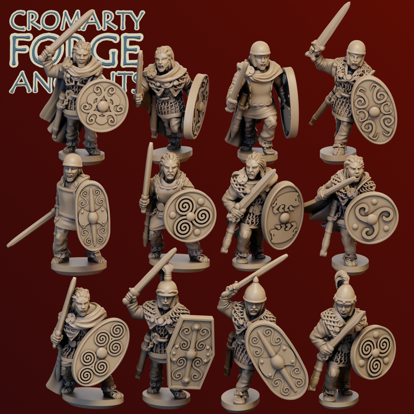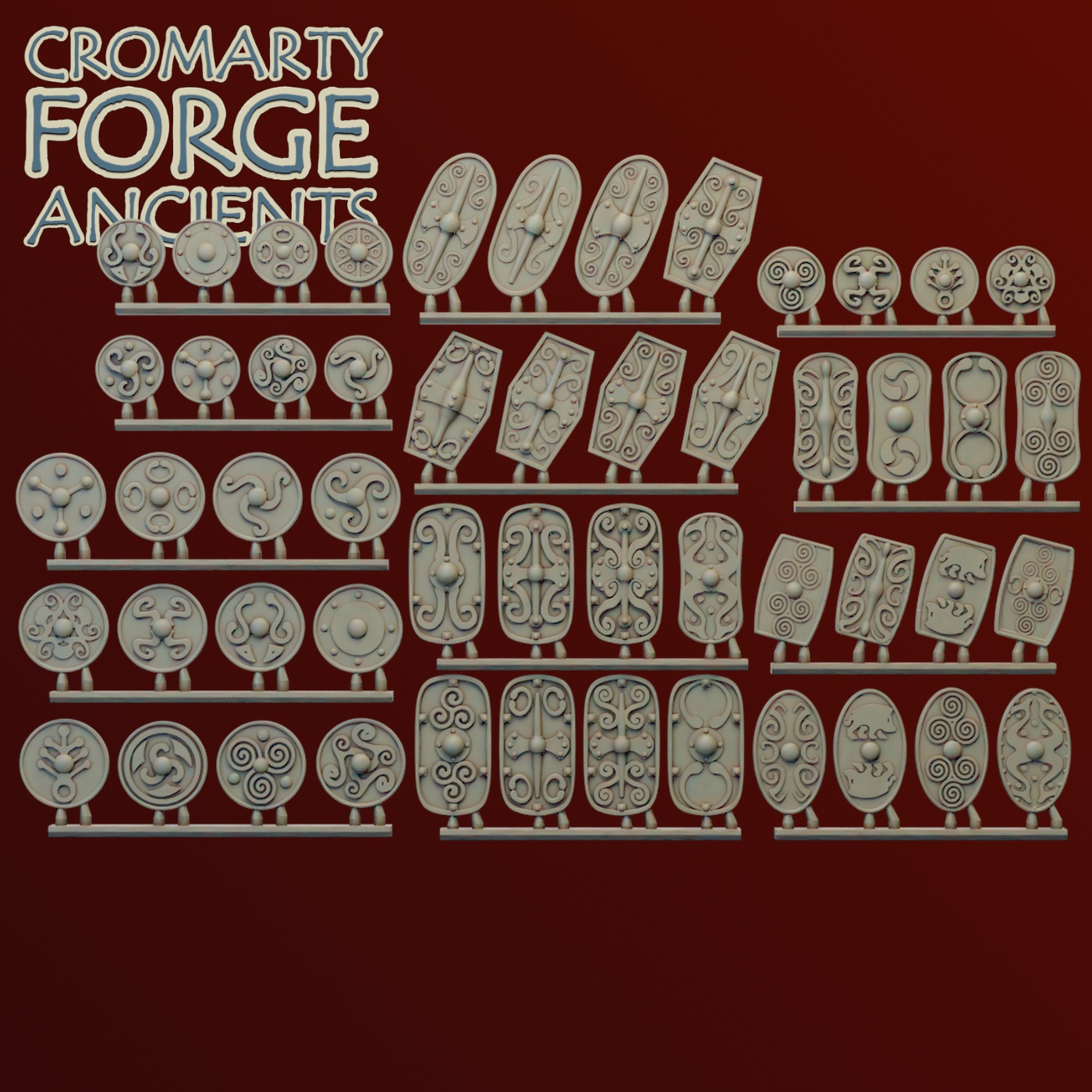 The 15mm gallic bodyguard set contains stl files for 12 bodyguards and over 50 shields.