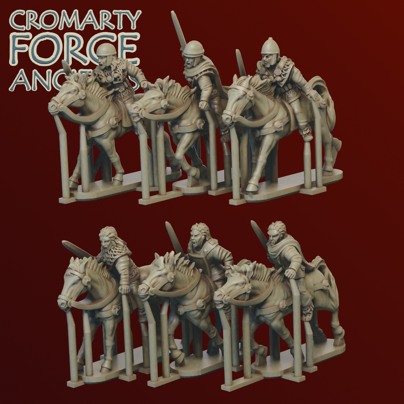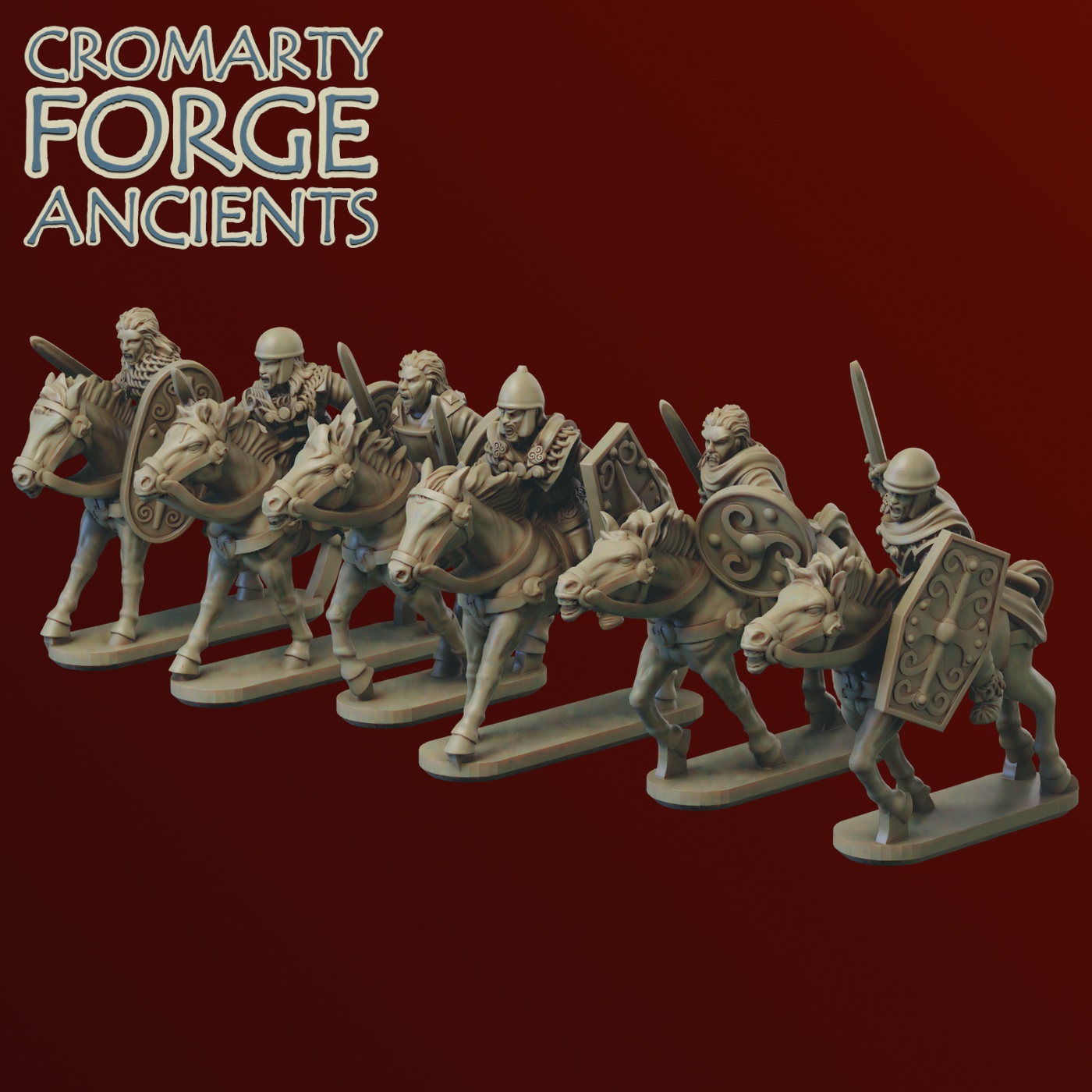 The Gallic Noble Cavalry set consists of stl files for 6 Noble cavalry models and over 50 shields.