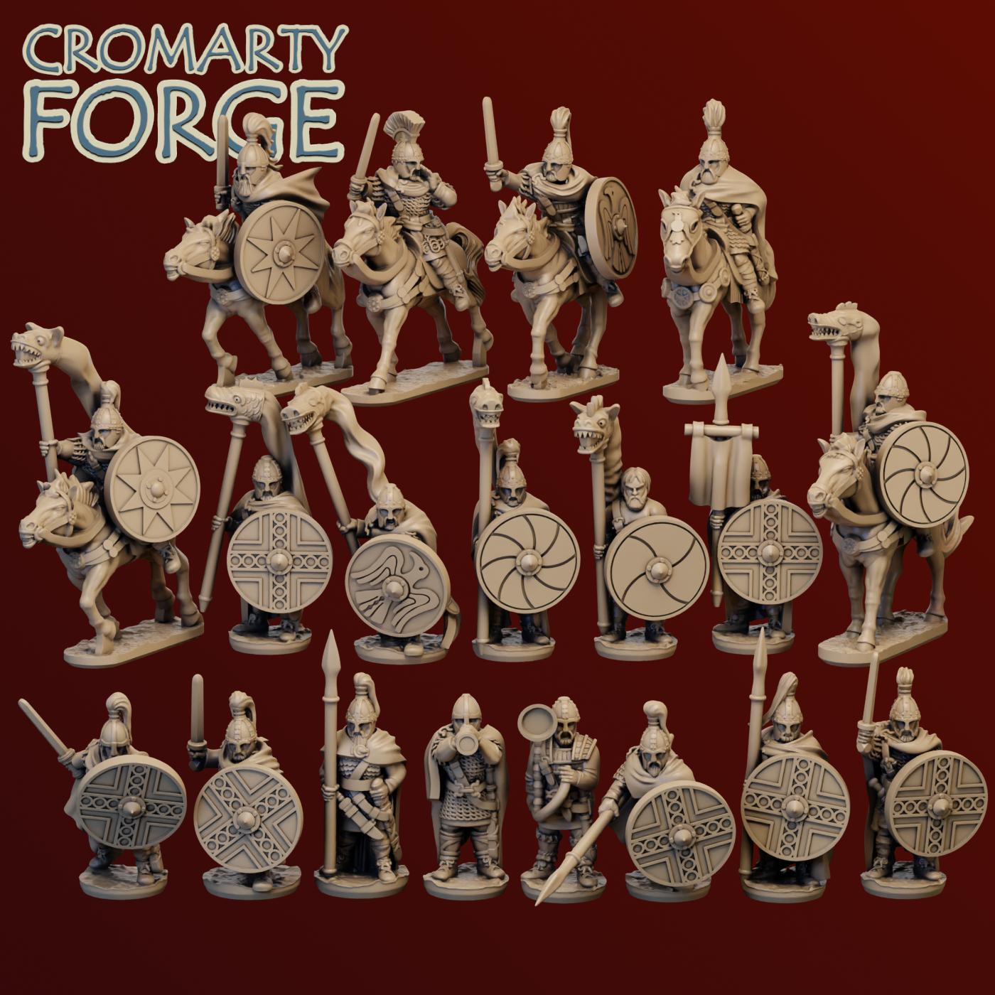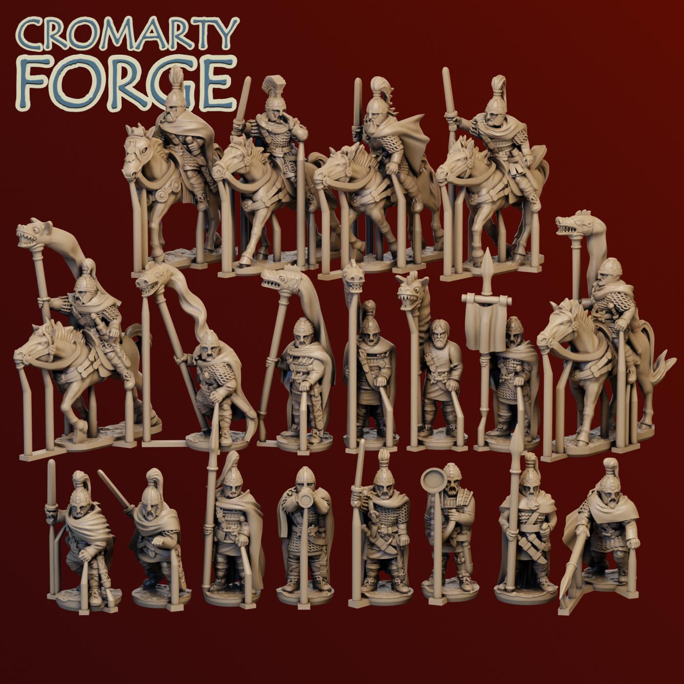 15mm Late Imperial Roman Command set contains files to print: 2 mounted generals (Aetius and Stilicho) 3 mounted commanders 3 mounted banners 2 banners on foot 6 commanders on foot 3 musicians on foot These models are pre-supported or are self supporting, soย that they can be printed flat on the print head of a resin […]