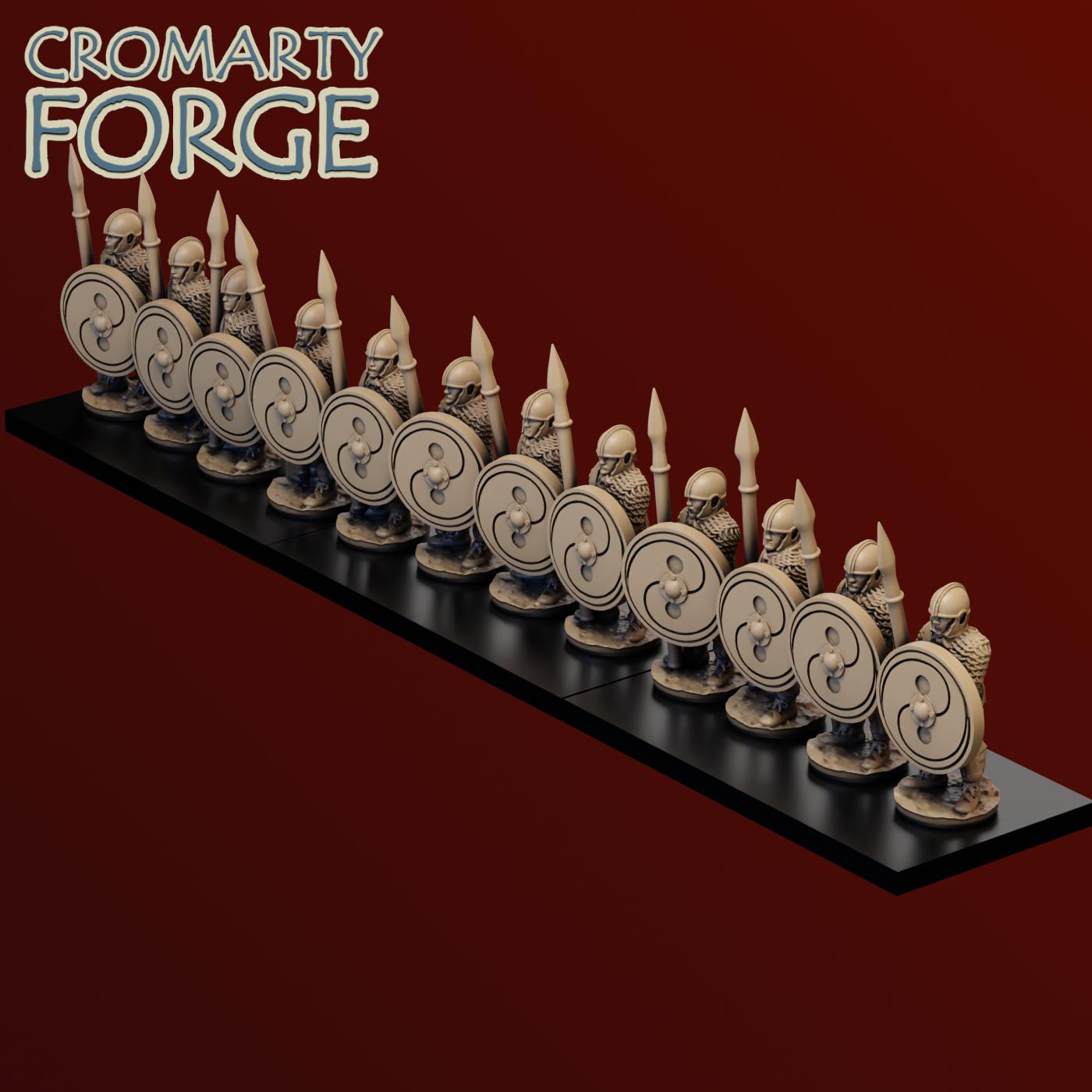15mm Late Imperial Roman Legionaries set contains files to print 16 late roman Legionaries. Provided with multiple shield options with and without darts.