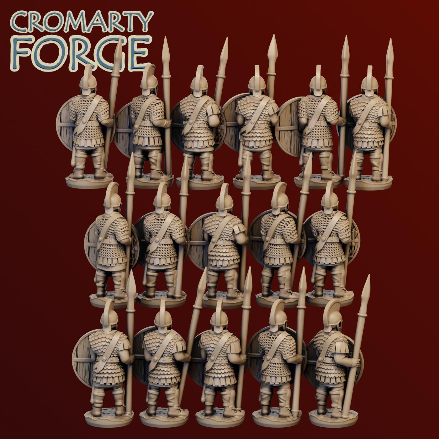115mm Late Imperial Roman Palatine set contains files to print 16 late roman Palatine guard. Provided with multiple shield options with and without darts.